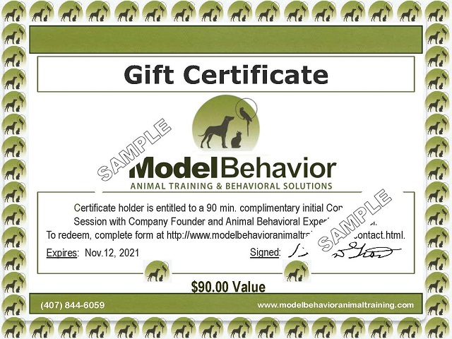 Looking for a unique gift for the pet owner in your life? Send the gift of “Good Behavior” with a gift certificate for a Consultation